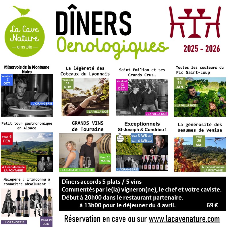 Les Dîners de La Cave Nature s’adressent à tous et reprennent les bases de la dégustation sous forme de dîner.